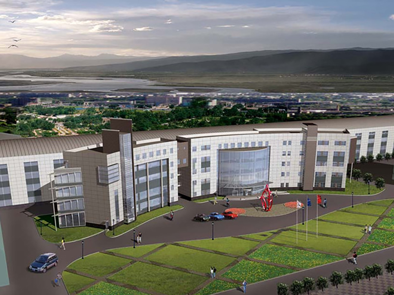 科技園項目一期總建筑面積約22.5萬平方米,包含6棟研發(fā)樓和2層地下車庫(地下共3層,一二期地下相互聯(lián)通),還設有下沉廣場和商鋪,敞亮的下沉廣場將所有建筑連在了一起。T6樓設置了戶外屋頂花園,特別鋪設