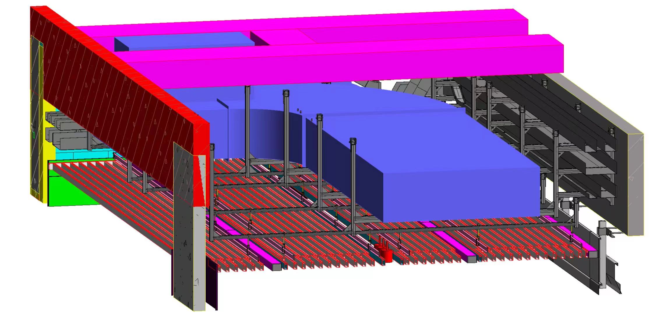 本工程分三個標段,合計總建筑面積為56.1萬㎡,建筑最高高度34.8m,其中一、三標段為多層大跨度鋼結構廠房。眾所周知,對于鋼結構廠房支架設計一直是行業(yè)內(nèi)的難題。華固充分利用BIM技術,自主研發(fā)的成品